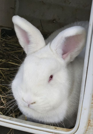 Was mir in meinem bisherigem Leben zugestoßen ist kann man kaum in Worte fassen. Ich saß in einer engen Bucht bei einem Züchter – kein Stroh/Heu unter meinen Füßen – es war die Hölle. Eine aufmerksame Tierschützerin hat mich aus diesem Elend herausgeholt. Es gibt doch noch Schutzengel, denn so kam ich und noch weitere Artgenossen auf die Kanincheninsel. Endlich spüre ich das kuschelige Stroh unter meinen Füßen - bekomme gutes gesundes Futter zum mümmeln. Mir sitzt immer noch die Angst im Nacken doch so langsam gewinne ich Vertrauen. Ich würde mich auf ein schönes kuscheliges Zuhause freuen.