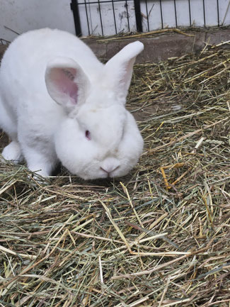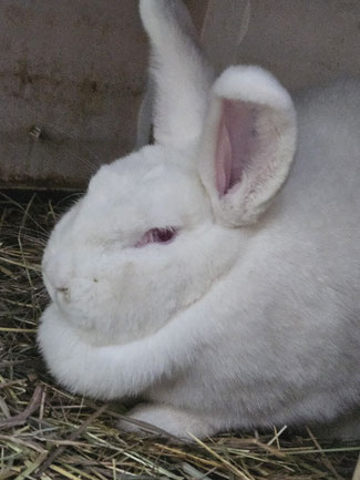 Was mir in meinem bisherigem Leben zugestoßen ist kann man kaum in Worte fassen. Ich saß in einer engen Bucht bei einem Züchter – kein Stroh/Heu unter meinen Füßen – es war die Hölle. Eine aufmerksame Tierschützerin hat mich aus diesem Elend herausgeholt. Es gibt doch noch Schutzengel, denn so kam ich und noch weitere Artgenossen auf die Kanincheninsel. Endlich spüre ich das kuschelige Stroh unter meinen Füßen - bekomme gutes gesundes Futter zum mümmeln. Mir sitzt immer noch die Angst im Nacken doch so langsam gewinne ich Vertrauen. Ich würde mich auf ein schönes kuscheliges Zuhause freuen.